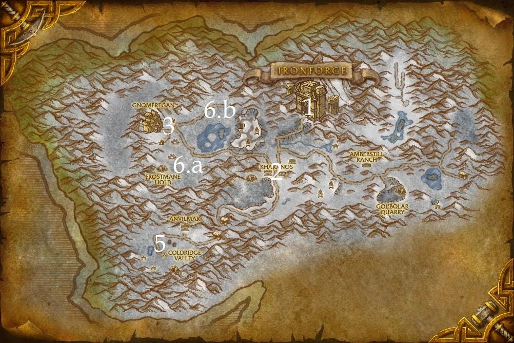 #6.b: The general wilderness between Gnomeregan and Ironforge, where there isn’t anything in particular.